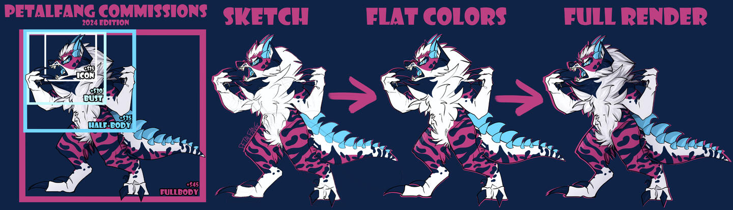 You must be 16 or older to commission, or with a parent/guardian’s permission. Proof of permission will need to be shown and validated if under 15.I have the right to decline a commission for any reason.Payment must be sent before I start on the commission, otherwise I will not work on it.I only accept PayPal and Venmo, and must be sent in USD. Please Google any currency conversions if needed.All invoices must be paid within 48 hours of being sent.You must provide a clear SFW digital reference sheet/pictures of your pet.Ask me about fan-art!Once I send a sketch of the commission, I will no longer accept refunds.I will make minor changes, however a fee will be presented if one or multiple large changes are made. Once the piece is finished I will not do anymore changes.I accept payment plans in two parts, however your commission won’t be finished until the payment plan is complete.Please tell me in advance if there is a due date you would like a piece done by. I will only accept due dates at least 2 weeks in advance so I do not rush the piece.You may not resell a commission piece unless you are selling the character/s drawn and the piece boosts the character’s value.I do accept holds.You may not repost, resell, trace or reference any commission on any social media platform.Turnaround time is approximately 1-2 weeks, depending on the commission type.Any cryptocurrency reproduction of my artwork (including but not limited to NFTs), is strictly forbidden in any way and you will be blocked, blacklisted, and reported to the appropriate social media/website. I will file a copyright claim if I have to. I do not support cryptocurrency and will take necessary action to protect my art and rights if need-be.